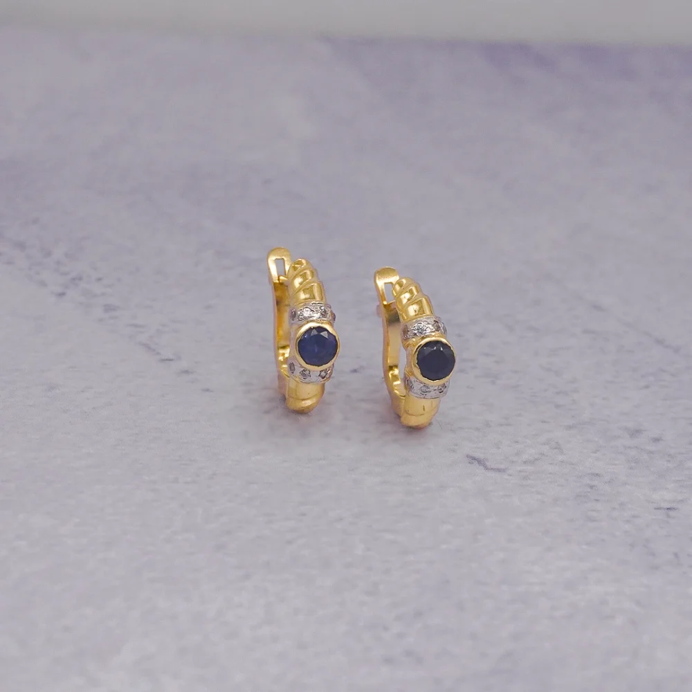 ARETES CORTOS PIEDRAS AZUL CIERRE CATALAN ORO