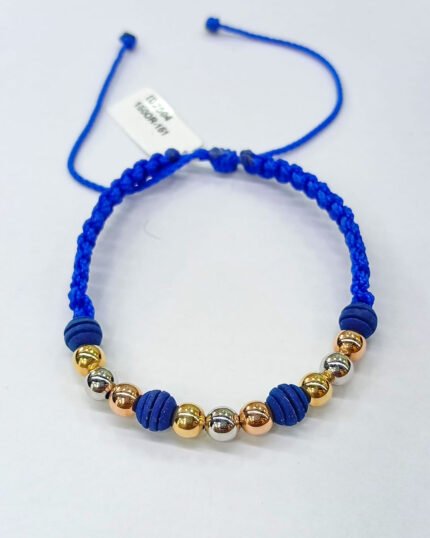 PULSO TEJIDO CON 9 BALINES DE ORO 18K CON BOLAS DE NEOPRENO EN HILO AZUL ELÉCTRICO