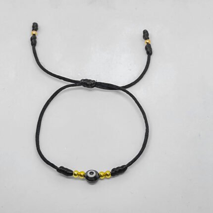 PULSO TEJIDO CON 6 BALINES DE ORO 18K CON OJO TURCO EN HILO NEGRO