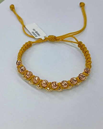 PULSO TEJIDO CON 20 BALINES DE ORO 18K EN HILO COLOR MOSTAZA