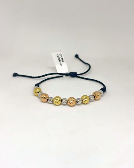 PULSO TEJIDO CON 13 BALINES DE TRES ORO 18K EN HILO NEGRO