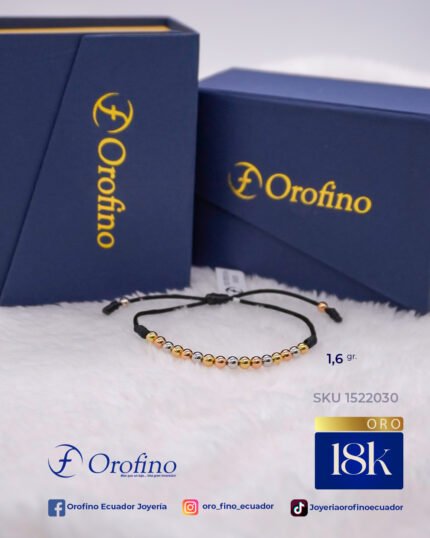 PULSO TEJIDO CON 22 BALINES DE ORO 18K EN HILO NEGRO