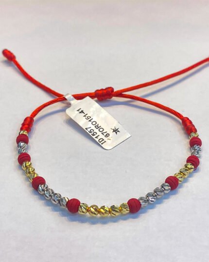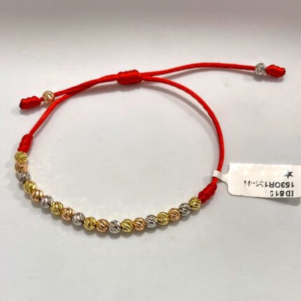 PULSO TEJIDO CON 21 BALINES DE ORO 18K CON HILO ROJO