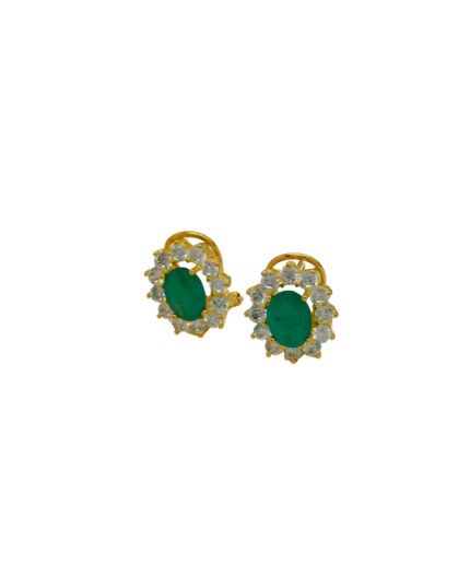 ARETES CORTOS CALADOS PIEDRAS VERDES ORO 18K