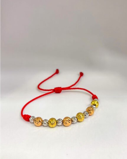 PULSO TEJIDO CON 22 BALINES DE ORO 18K EN HILO ROJO