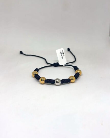 PULSO TEJIDO CON 5 BALINES DE TRES ORO 18K CON 6 NUDOS EN HILO NEGRO