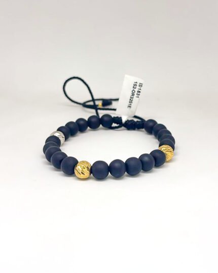 PULSO TEJIDO CON 34 BALINES DE ORO 18K EN HILO NEGRO