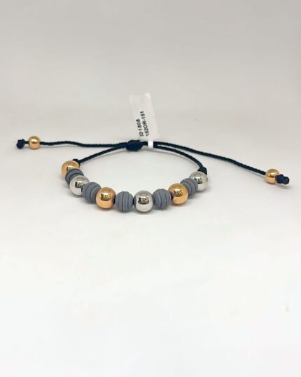 PULSO TEJIDO CON 9 BALINES DE ORO 18K CON BOLAS DE NEOPRENO EN HILO NEGRO