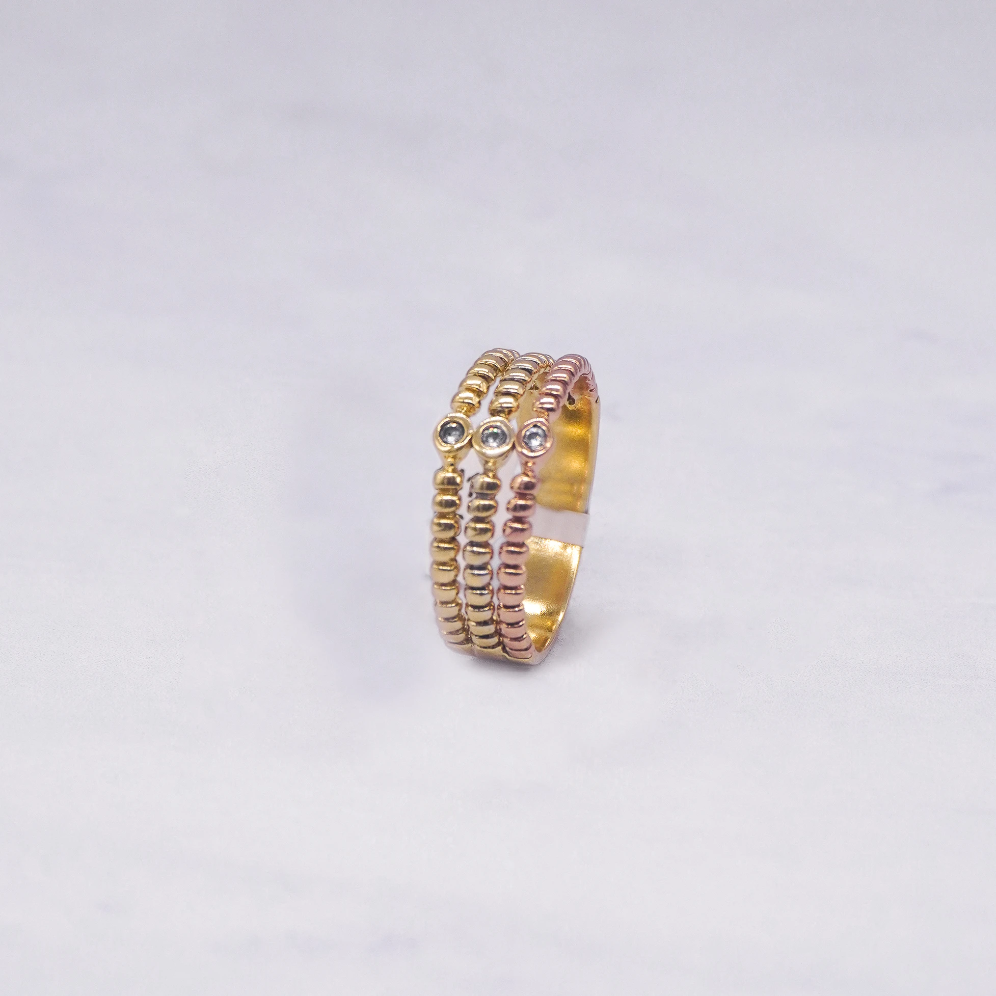 ANILLO PARA DAMA CALADO TRES OROS 18K