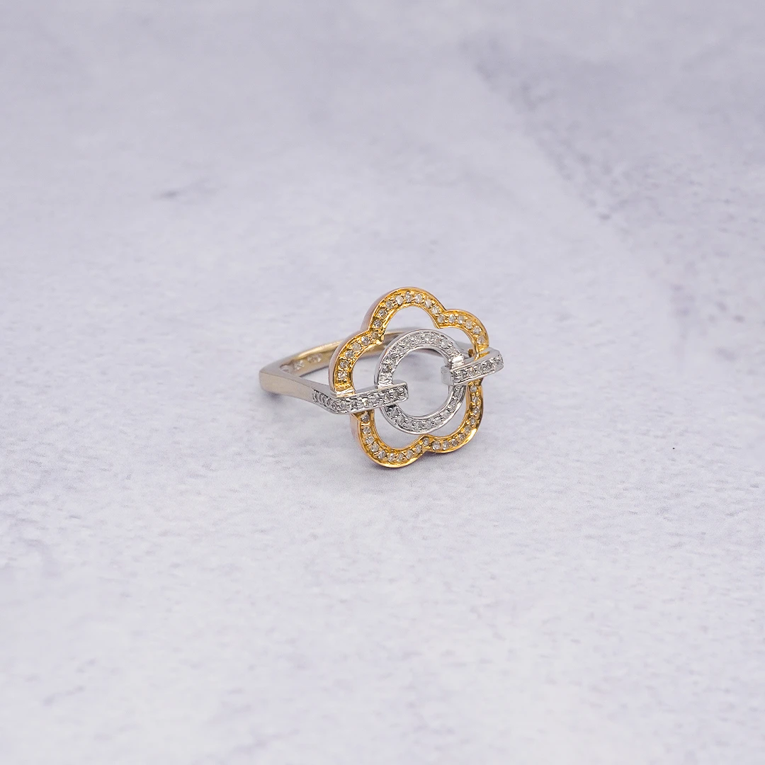 Anillo para Dama Rosa Dos Oros con Piedras Oro 18K elaborado en oro 18 Kilates, una joya exclusiva de Orofino, reconocida joyería en Ecuador especializada en anillos de oro, aretes de oro, cadenas y dijes de alta calidad. Su diseño elegante y acabado fino brindan brillo, resistencia y distinción, ideal para celebraciones especiales o para lucir anillos de oro con estilo sofisticado todos los días.