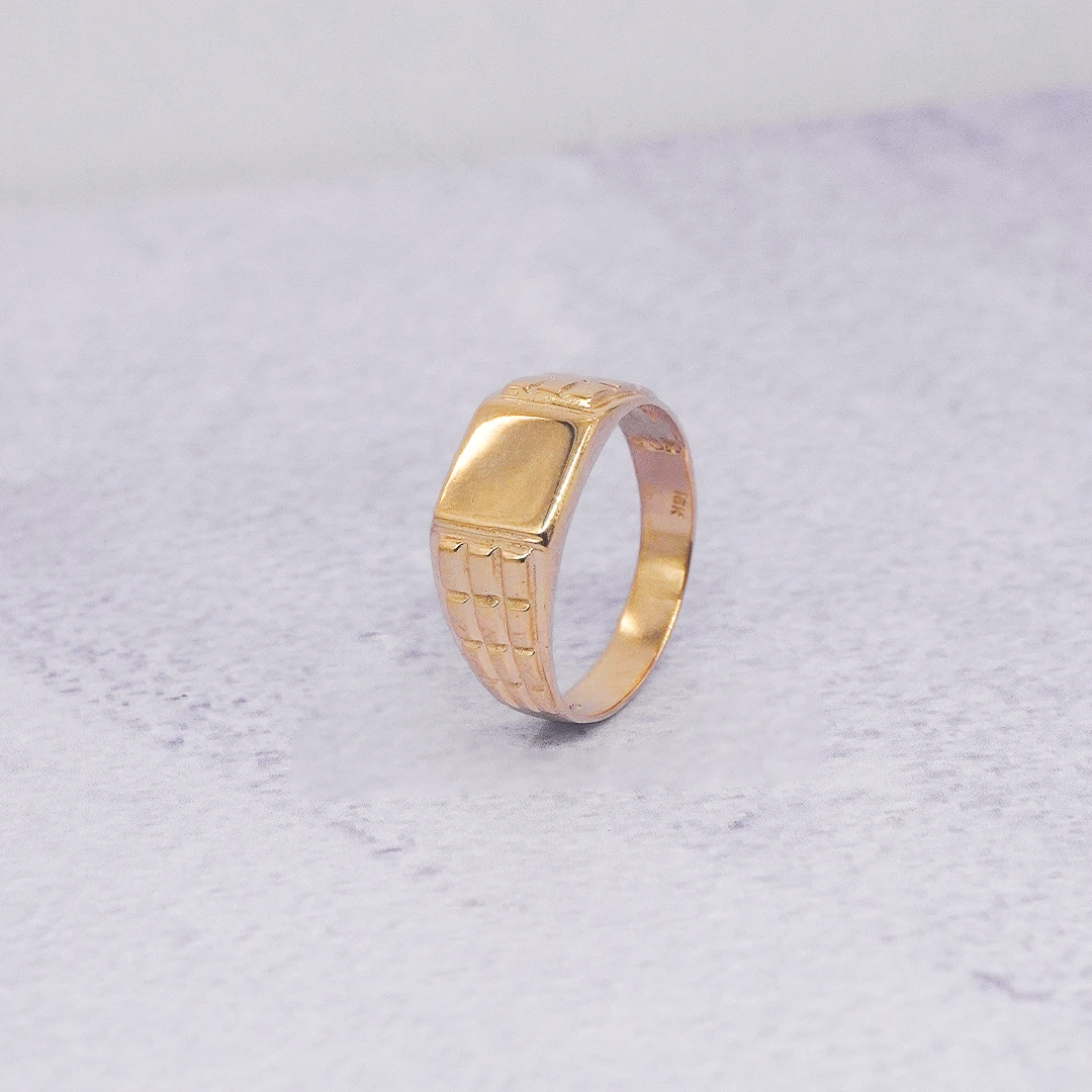 Anillo Para Hombre Cuadrado Liso Oro 18K elaborado en oro 18 Kilates, una pieza exclusiva de Orofino, joyería en Ecuador especializada en anillos de oro, aretes de oro y cadenas de alta calidad. Su diseño elegante y acabado fino garantizan brillo duradero y excelente resistencia. Ideal para quienes buscan joyas de lujo para uso diario o para regalar en ocasiones especiales.