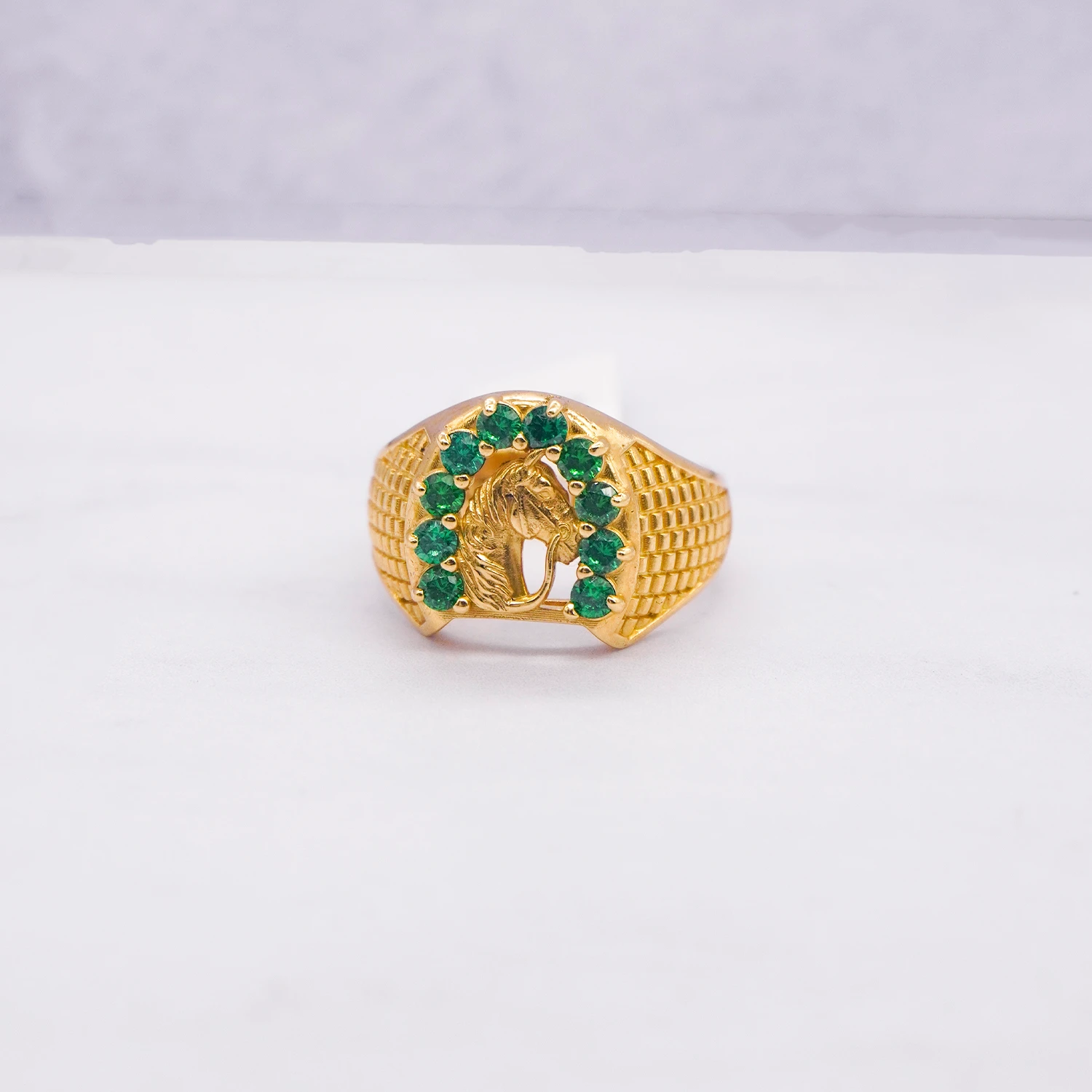 ANILLO PARA HOMBRE HERRADURA CABALLO PIEDRAS COLORES ORO 18K