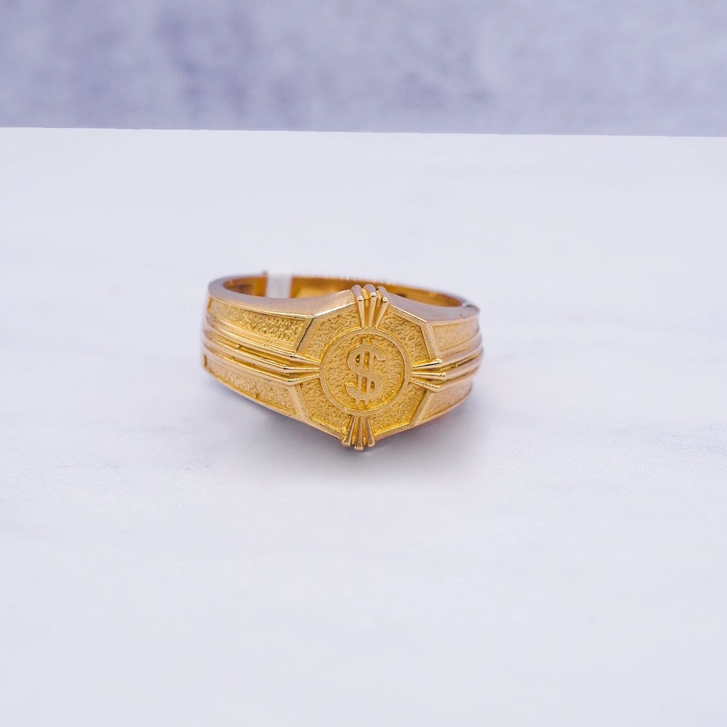 Anillo Para Hombre Sello Dolar Arenado Oro 18K elaborado en oro 18 kilates, una joya exclusiva que destaca en la joyería en Ecuador por su elegancia, brillo y durabilidad. Ideal para regalar o complementar tu estilo. En Orofino encuentras anillos de oro, aretes de oro y cadenas de oro con diseños únicos y acabados de alta calidad.