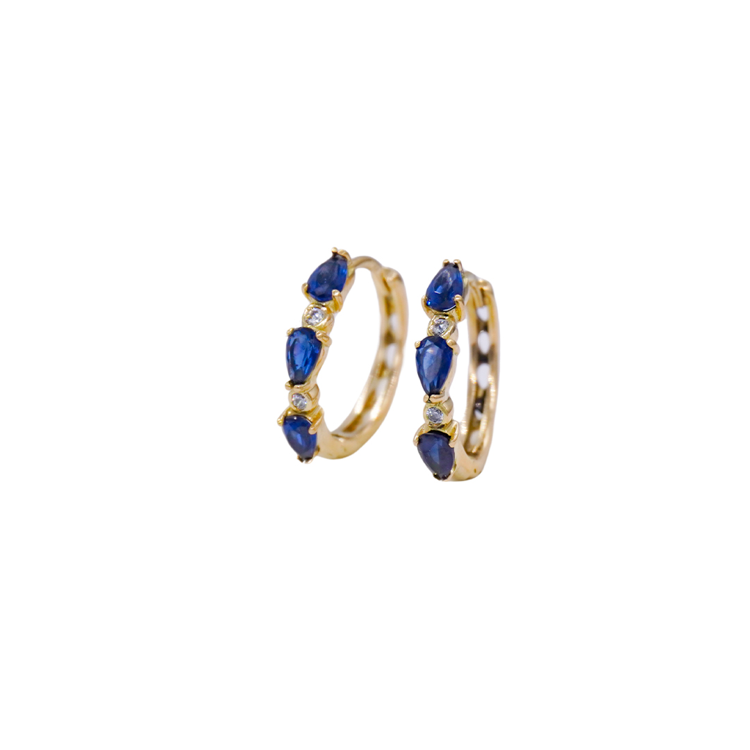 ARETES CANDONGAS TENNIS PIEDRA AZULES BLANCAS 18K