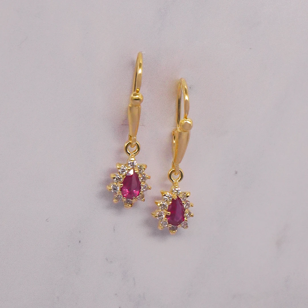 ARETES COLGANTES PIEDRAS ROJAS ORO 18K