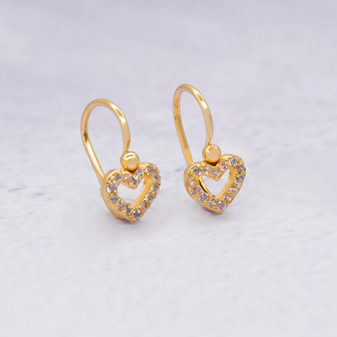 Aretes Cortos Corazón Calado con Piedras Oro 18K elaborados en oro 18 Kilates, una joya exclusiva de Orofino, reconocida joyería en Ecuador especializada en anillos de oro, aretes de oro, cadenas y dijes de alta calidad. Su diseño elegante y acabado fino resaltan el brillo natural del oro 18 Kilates, convirtiéndolos en aretes de oro ideales para complementar cualquier estilo con sofisticación, lujo y durabilidad.
