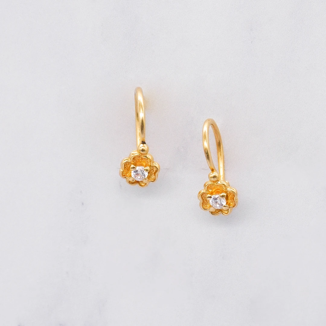 Aretes Cortos Flor Piedra Oro 18K elaborados en oro 18 Kilates, una joya exclusiva de Orofino, reconocida joyería en Ecuador especializada en anillos de oro, aretes de oro, cadenas y dijes de alta calidad. Su diseño elegante y acabado fino resaltan el brillo natural del oro 18 Kilates, convirtiéndolos en aretes de oro ideales para complementar cualquier estilo con sofisticación, lujo y durabilidad.