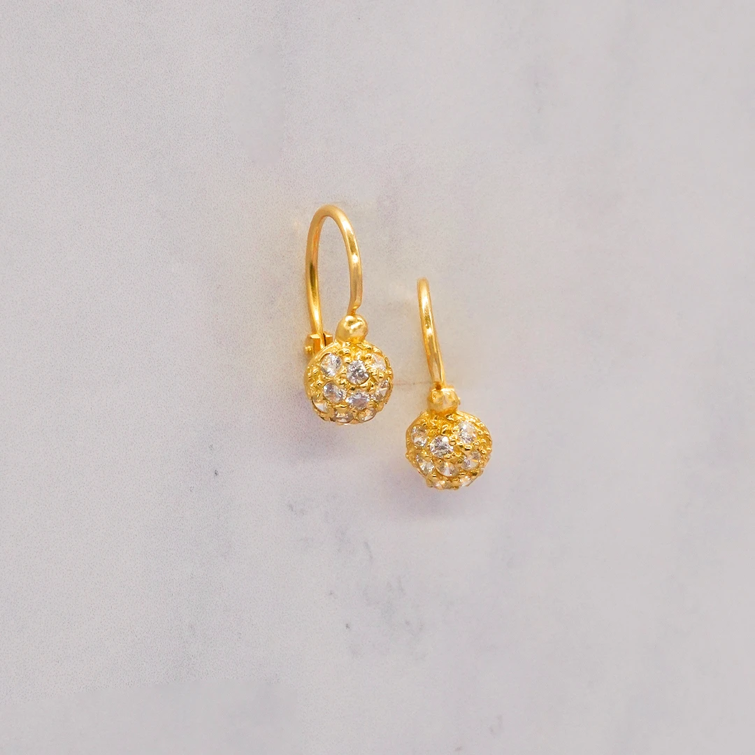 ARETES CORTOS MEDIA BOLA DE FUEGO ORO 18K