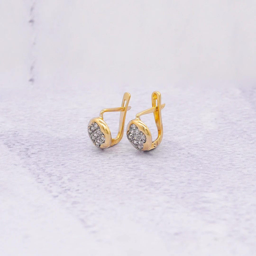ARETES CORTOS TREBOL COLMENA ORO 18K