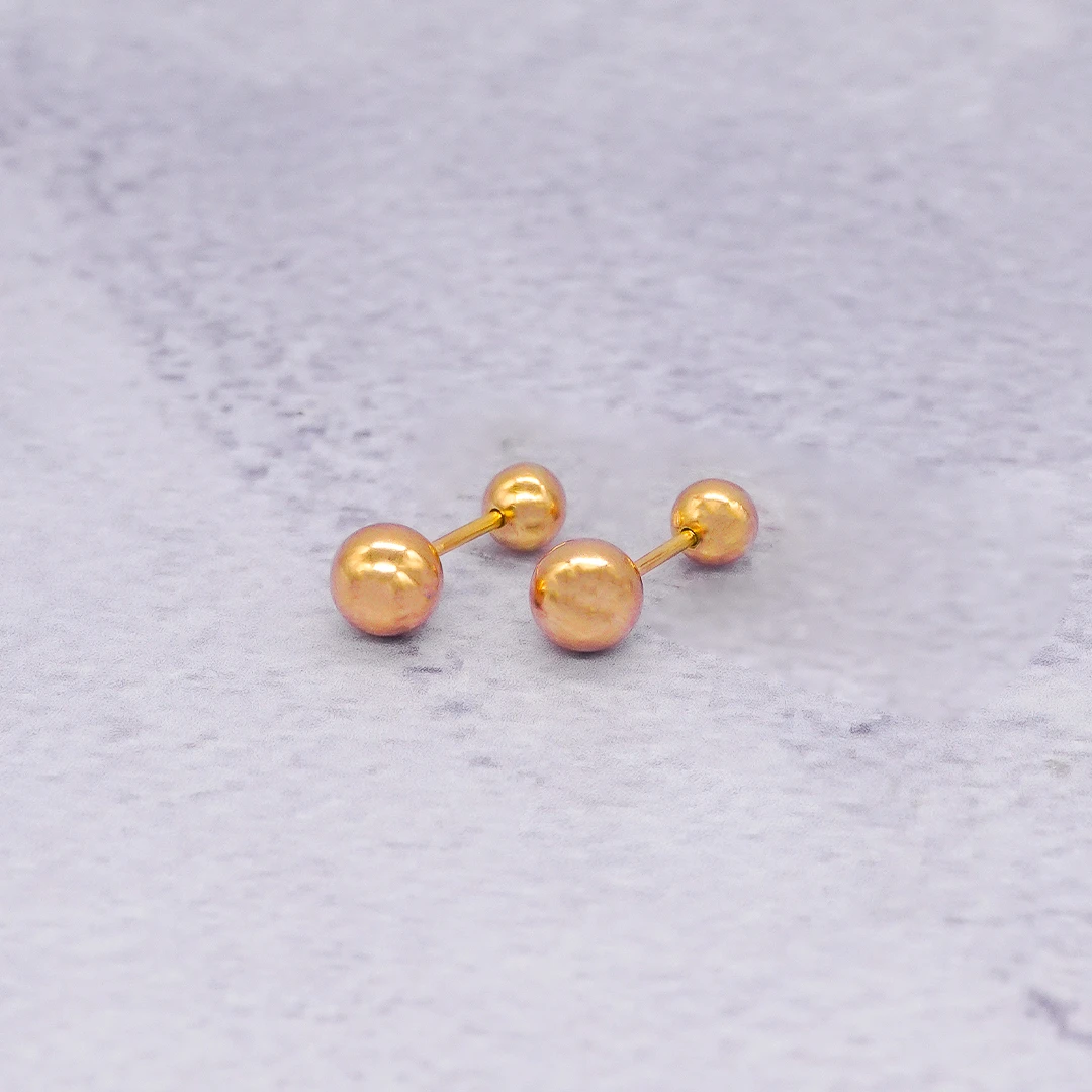 ARETES TOPOS BOLAS ORO ROSA 18K