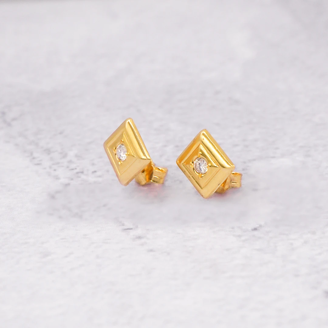 Aretes Topos Cuadrados con Piedras Oro 18K elaborado en oro 18 Kilates, una joya exclusiva de Orofino, prestigiosa joyería en Ecuador especializada en anillos de oro, aretes de oro, cadenas y dijes de alta calidad. Su acabado pulido resalta la belleza natural del oro 18 Kilates, convirtiéndolos en aretes de oro ideales para realzar tu estilo con elegancia y sofisticación.