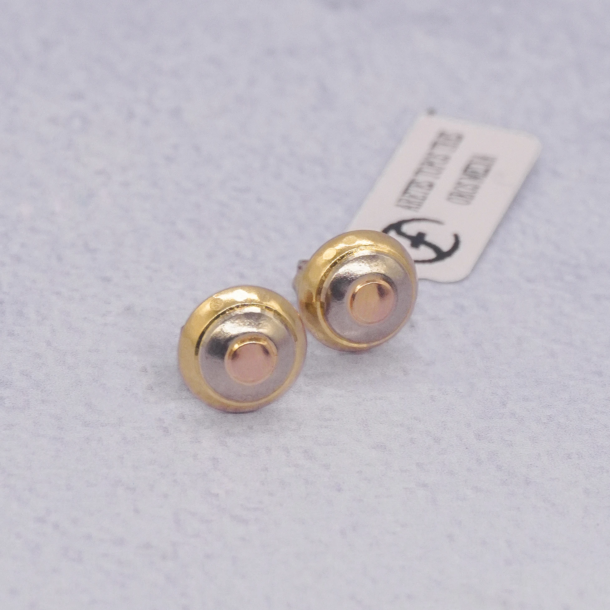 ARETES TOPOS TRES OROS MEDIA BOLA ORO 18K
