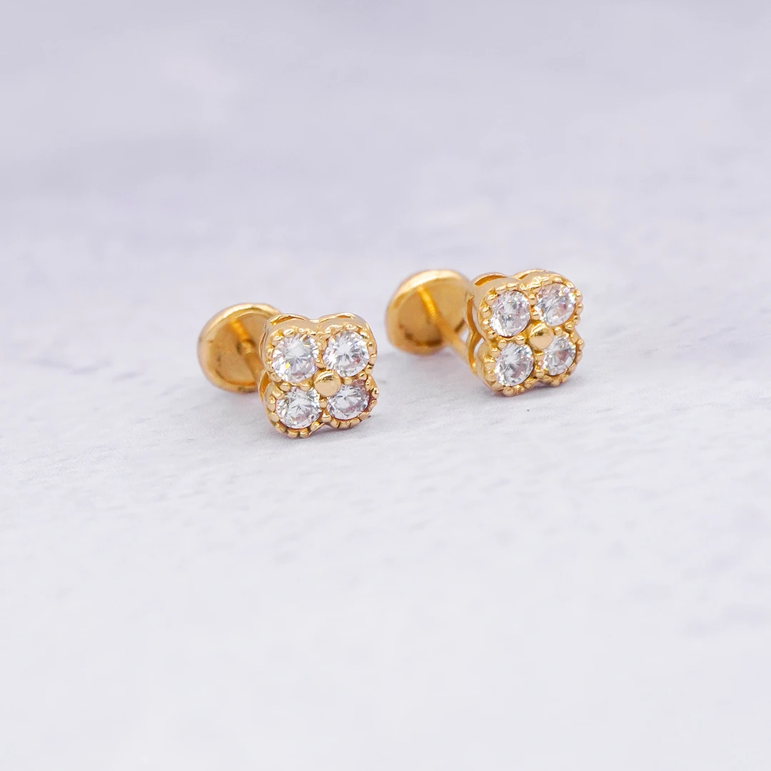 ARETES TOPOS FLOR ORTOPEDICOS ORO 18K