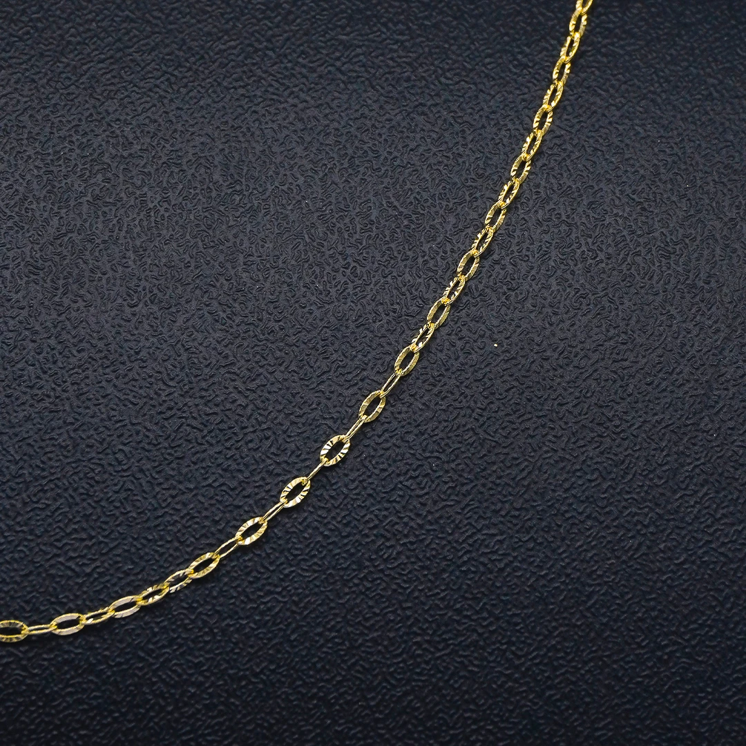 Cadena Tejido Rolón Diamantada Oro 18K elaborado en oro 18 Kilates, una joya exclusiva de Orofino, reconocida joyería en Ecuador especializada en anillos de oro, aretes de oro, cadenas y dijes de alta calidad. Su tejido cuidadosamente elaborado ofrece durabilidad y brillo excepcional, perfecto para complementar anillos de oro y aretes de oro con elegancia y modernidad.