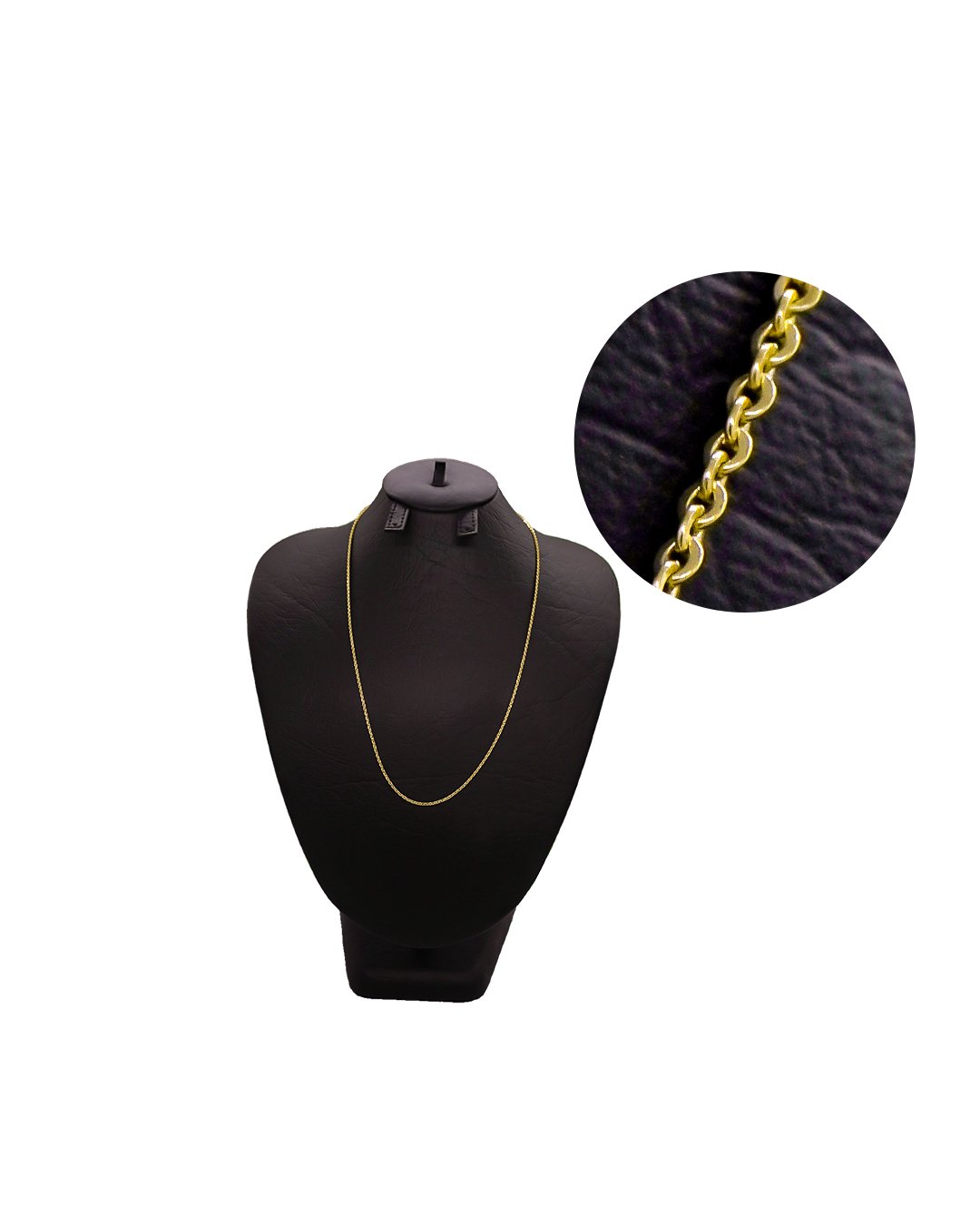 Esta cadena de oro de 18K con tejido rolón fino es una pieza clásica que destaca por su durabilidad y brillo elegante. Su diseño corto la convierte en un accesorio versátil y atemporal, ideal para combinar con dijes pequeños o para usar sola en un look minimalista y refinado.