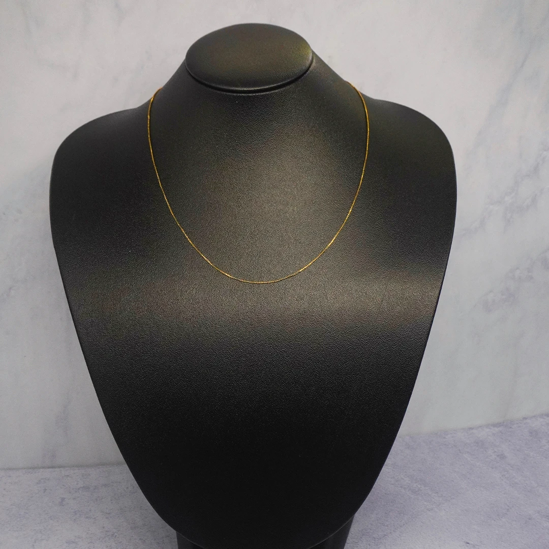 Cadena Tejido Veneciana Fina Corta Oro 18K elaborado en oro 18 Kilates, una joya exclusiva de Orofino, prestigiosa joyería en Ecuador especializada en anillos de oro, aretes de oro y cadenas de alta calidad. Su diseño elegante y acabado fino garantizan brillo duradero y excelente resistencia. Perfecto para quienes buscan lujo, distinción y una pieza ideal para uso diario o para regalar en ocasiones especiales.
