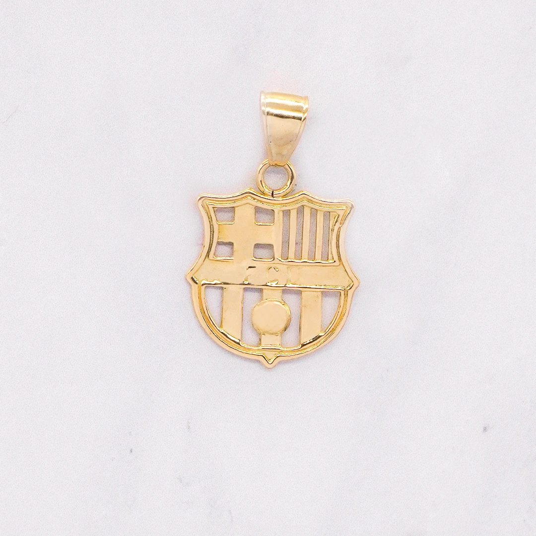 Dije Calado Barcelona Oro 18K elaborado en oro 18 Kilates, una joya exclusiva de Orofino, prestigiosa joyería en Ecuador especializada en anillos de oro, aretes de oro, cadenas y dijes de alta calidad. Su diseño detallado y brillo radiante reflejan la excelencia de la joyería en Ecuador, siendo una opción perfecta para regalar o expresar tu fe y estilo personal.