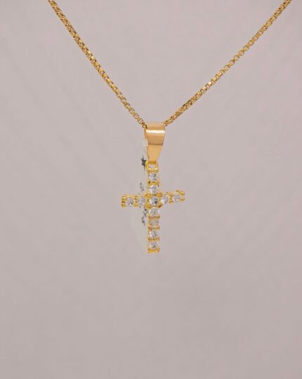 Dije cruz Cristo calada en Dos Oros 18k con piedras, una joya que une espiritualidad y lujo.