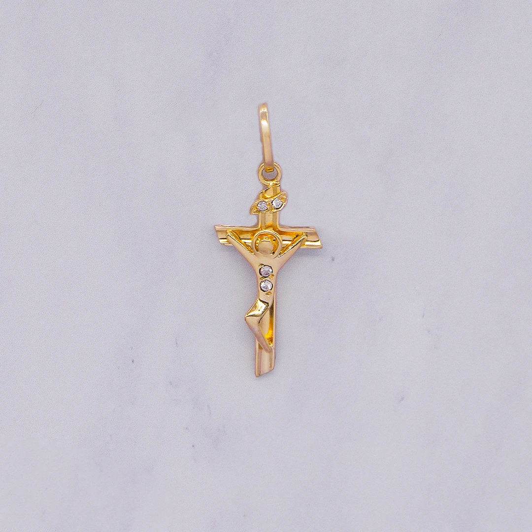 DIJE CRUZ CRISTO PIEDRA ORO 18K