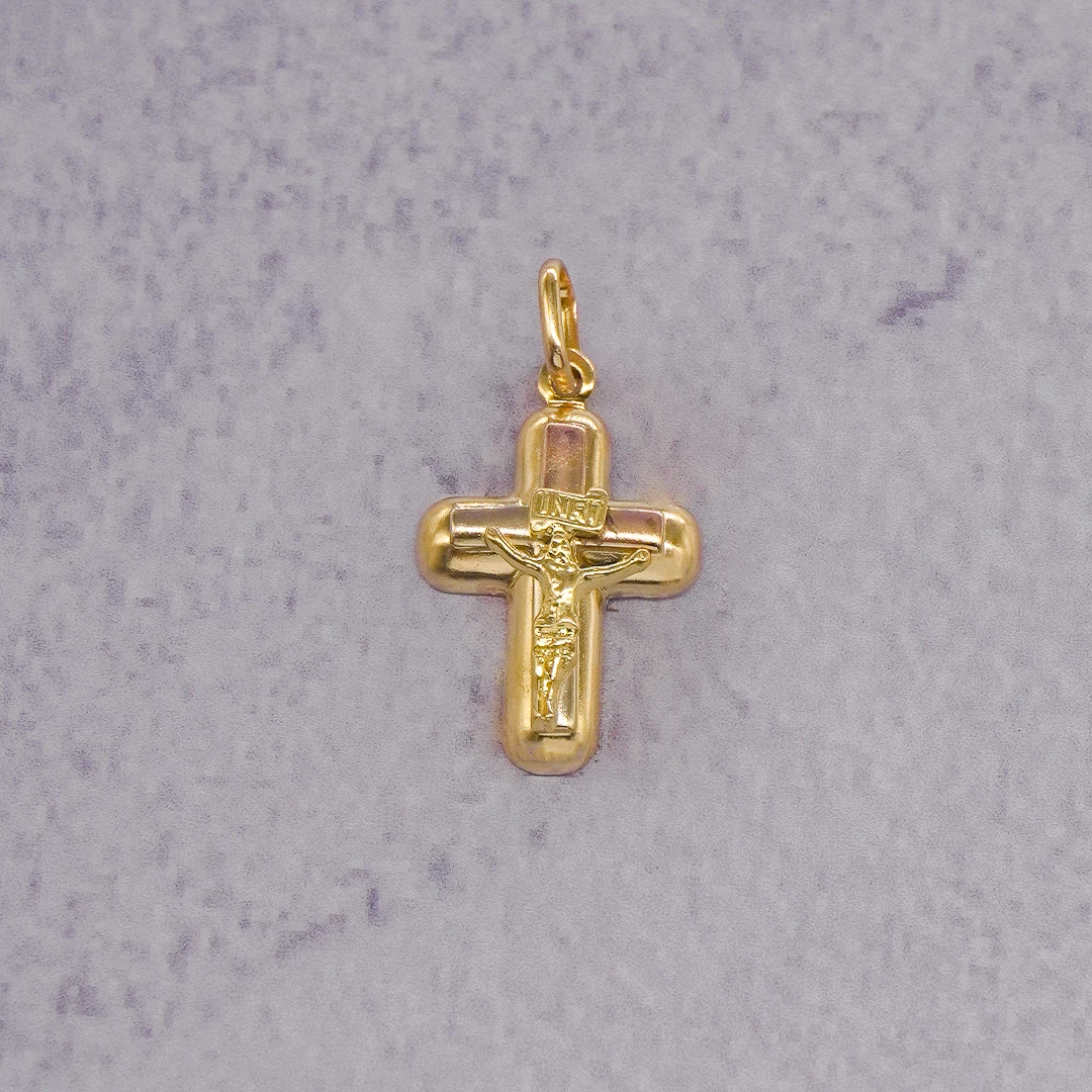 Dije Cruz Cristo Tres Oros 18K elaborado en oro 18 Kilates, una joya exclusiva de Orofino, reconocida joyería en Ecuador especializada en anillos de oro, aretes de oro y cadenas de alta calidad. Su diseño elegante y acabado fino garantizan brillo duradero y resistencia, convirtiéndolo en una opción perfecta para uso diario o para regalar en ocasiones especiales con distinción y lujo.