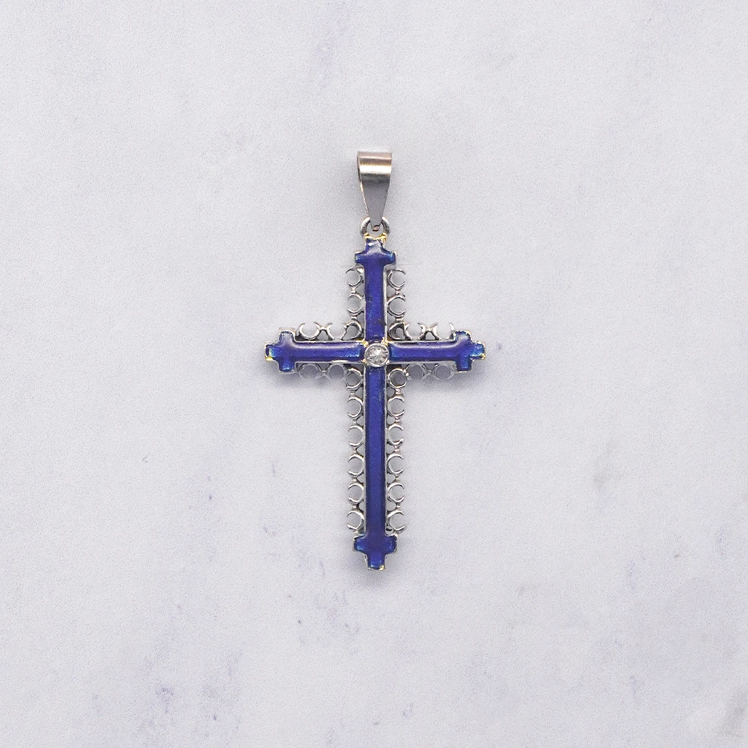Dije Cruz Piedra Azul Oro Blanco Oro 18K elaborado en oro 18 Kilates, una joya exclusiva de Orofino, prestigiosa joyería en Ecuador especializada en anillos de oro, aretes de oro y cadenas de alta calidad. Su diseño elegante y acabado fino garantizan brillo duradero y excelente resistencia. Perfecto para quienes buscan lujo, distinción y una pieza ideal para uso diario o para regalar en ocasiones especiales.
