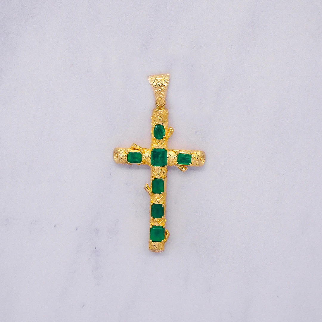 Dije Cruz Piedras Verdes Oro 18K elaborado en oro 18 Kilates, una joya exclusiva de Orofino, reconocida joyería en Ecuador especializada en anillos de oro, aretes de oro, cadenas y dijes de alta calidad. Su diseño detallado y brillo radiante reflejan la excelencia de la joyería en Ecuador, siendo una opción perfecta para regalar o expresar tu estilo personal.