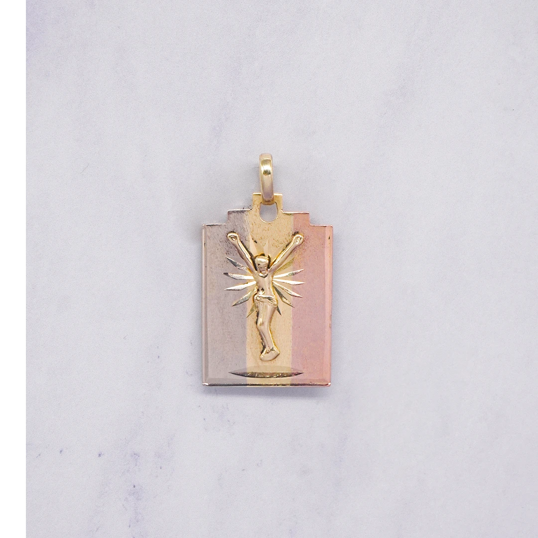 DIJE PLACA CRISTO TRES OROS 18K