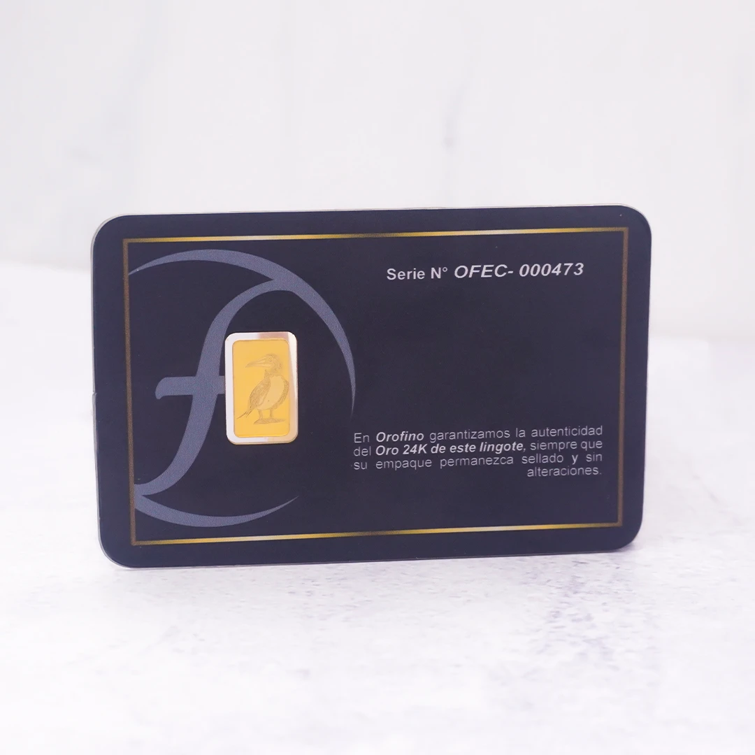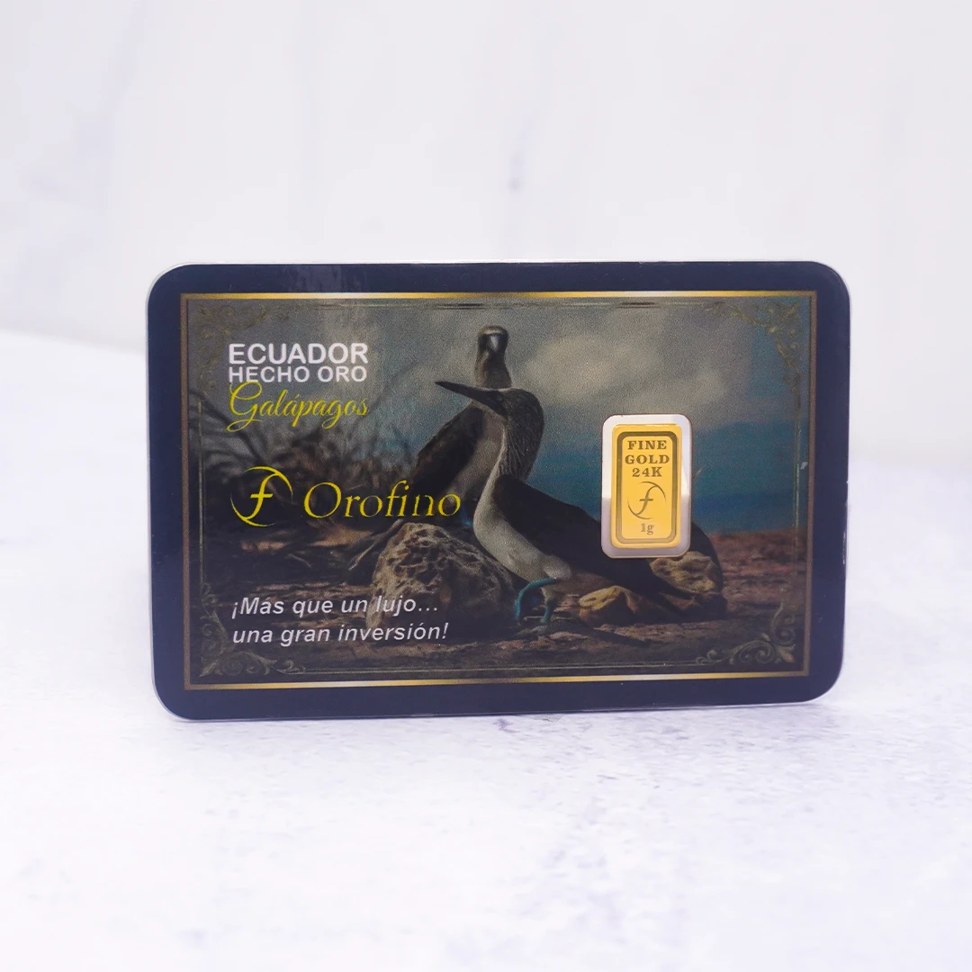 Lingote de Oro 24K Edición Ecuador Galápagos – Piquero de Patas Azules, pieza exclusiva de inversión elaborada en oro 24 Kilates, disponible en Orofino, joyería en Ecuador especializada en oro de alta pureza. Este lingote combina valor patrimonial con diseño representativo del país, ideal para quienes buscan invertir en oro seguro, proteger su capital y adquirir activos que no pierden valor con el tiempo.