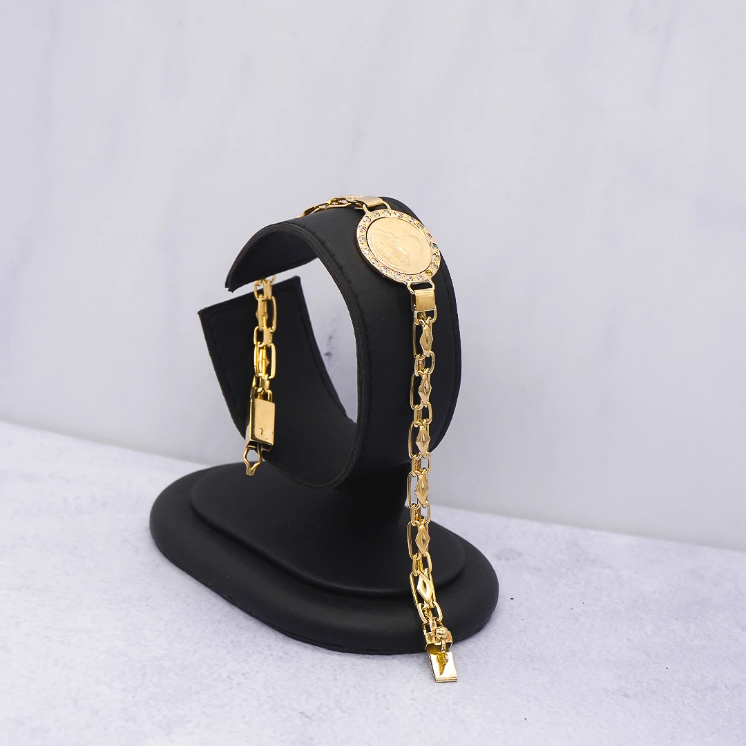 Pulso Tejido Chino con Moneda Oro 18K elaborado en oro 18 Kilates, una joya exclusiva de Orofino, reconocida joyería en Ecuador especializada en anillos de oro, aretes de oro, cadenas y dijes de alta calidad. Su tejido cuidadosamente elaborado ofrece durabilidad y brillo excepcional, perfecto para complementar anillos de oro y aretes de oro con elegancia y modernidad.