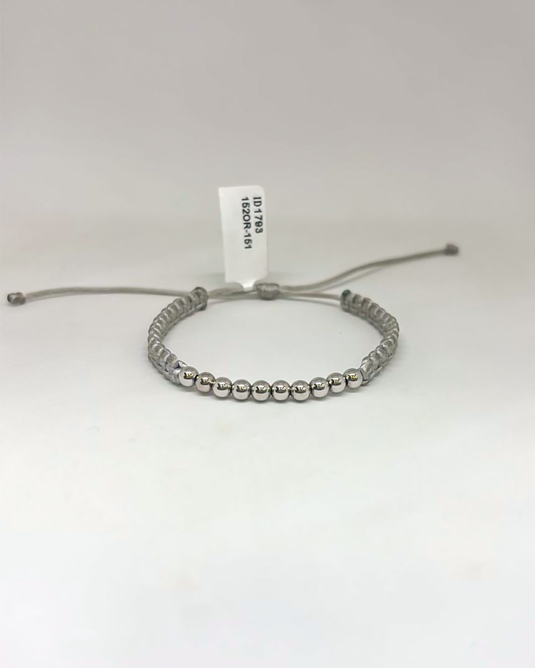 PULSO TEJIDO CON 10 BALINES DE ORO 18K ESTILO MACRAMÉ EN HILO GRIS