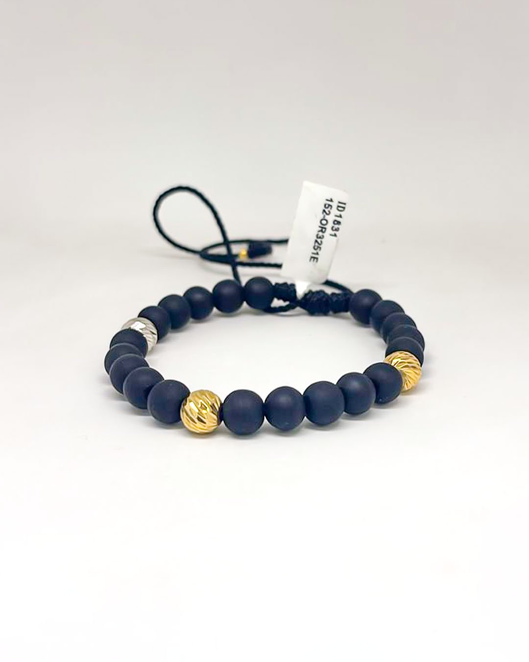 PULSO TEJIDO CON 5 BALINES DE ORO 18K EN HILO NEGRO CON BOLA DE NEOPRENO