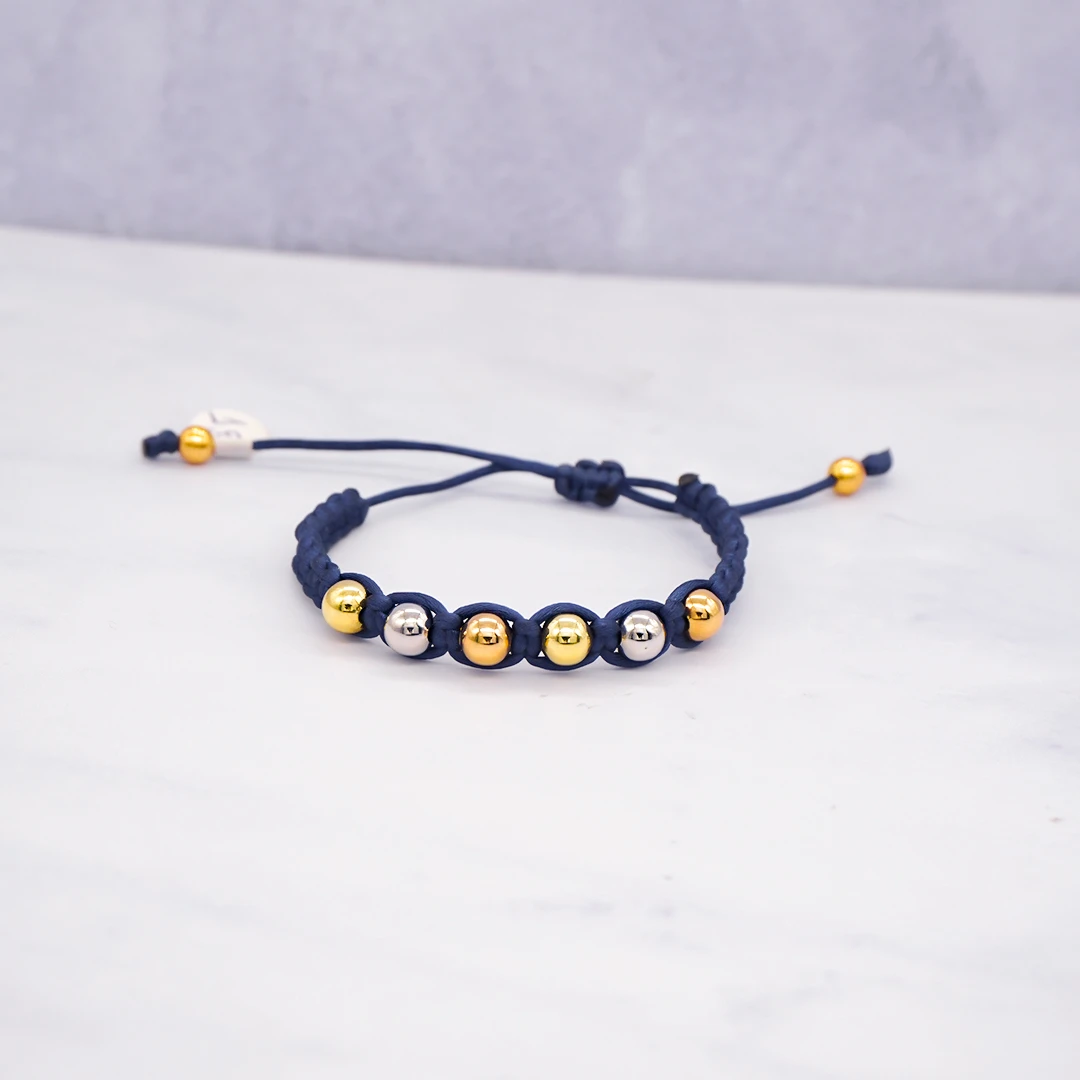 PULSO TEJIDO CON 8 BOLAS DE ORO 18K