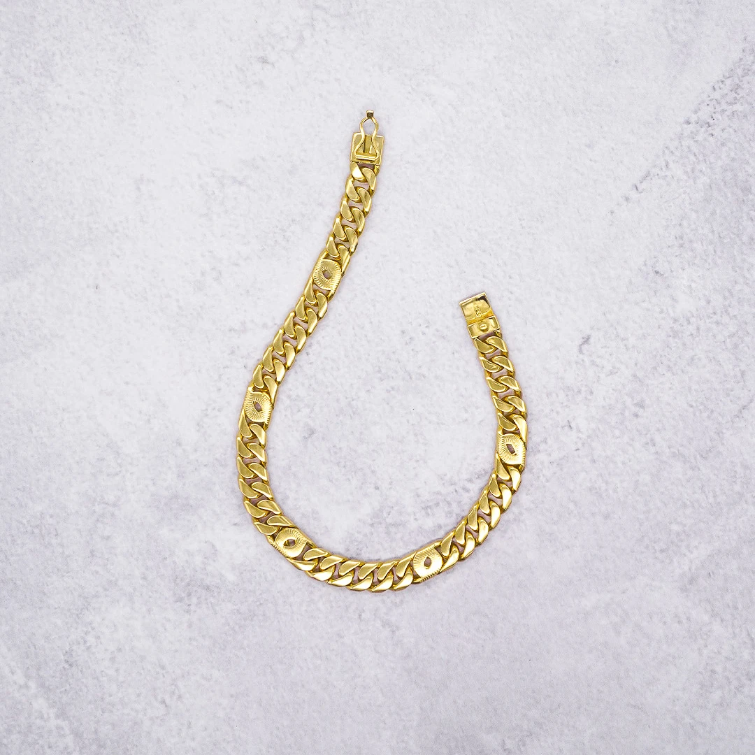 Pulso Tejido Cubano Ojos De Lince Oro 18K elaborado en oro 18 Kilates con diseño sofisticado y acabados de alta precisión. Esta pieza exclusiva de Orofino resalta en la joyería en Ecuador por su elegancia, brillo duradero y excelente calidad. Perfecto para quienes buscan anillos de oro, aretes de oro, cadenas y dijes finos con estilo, distinción y garantía.